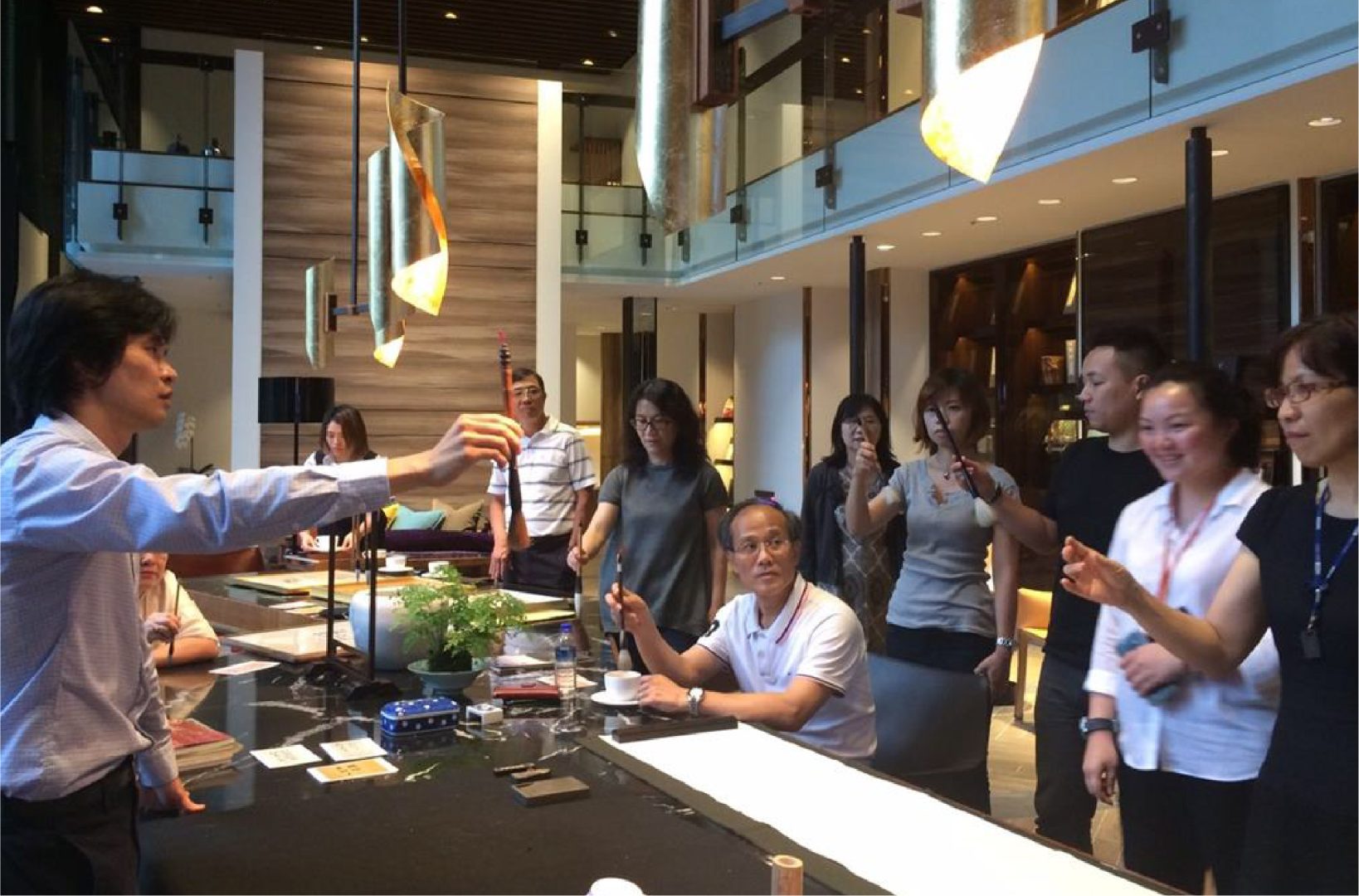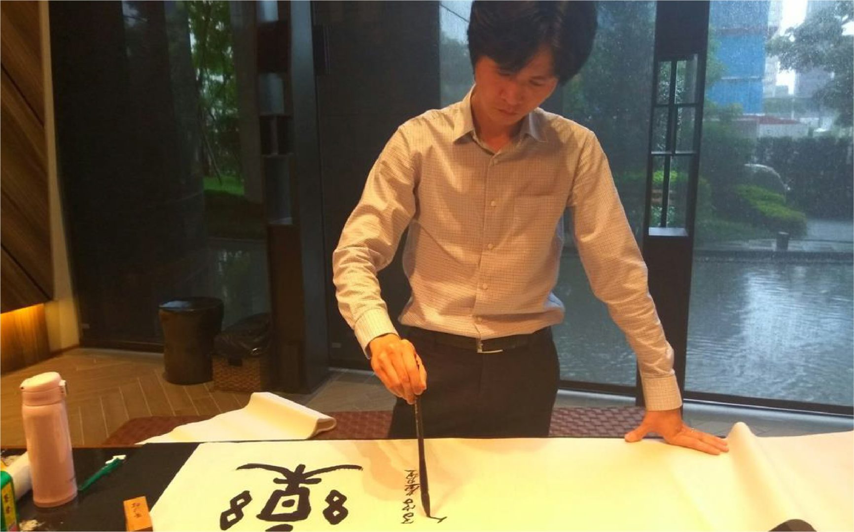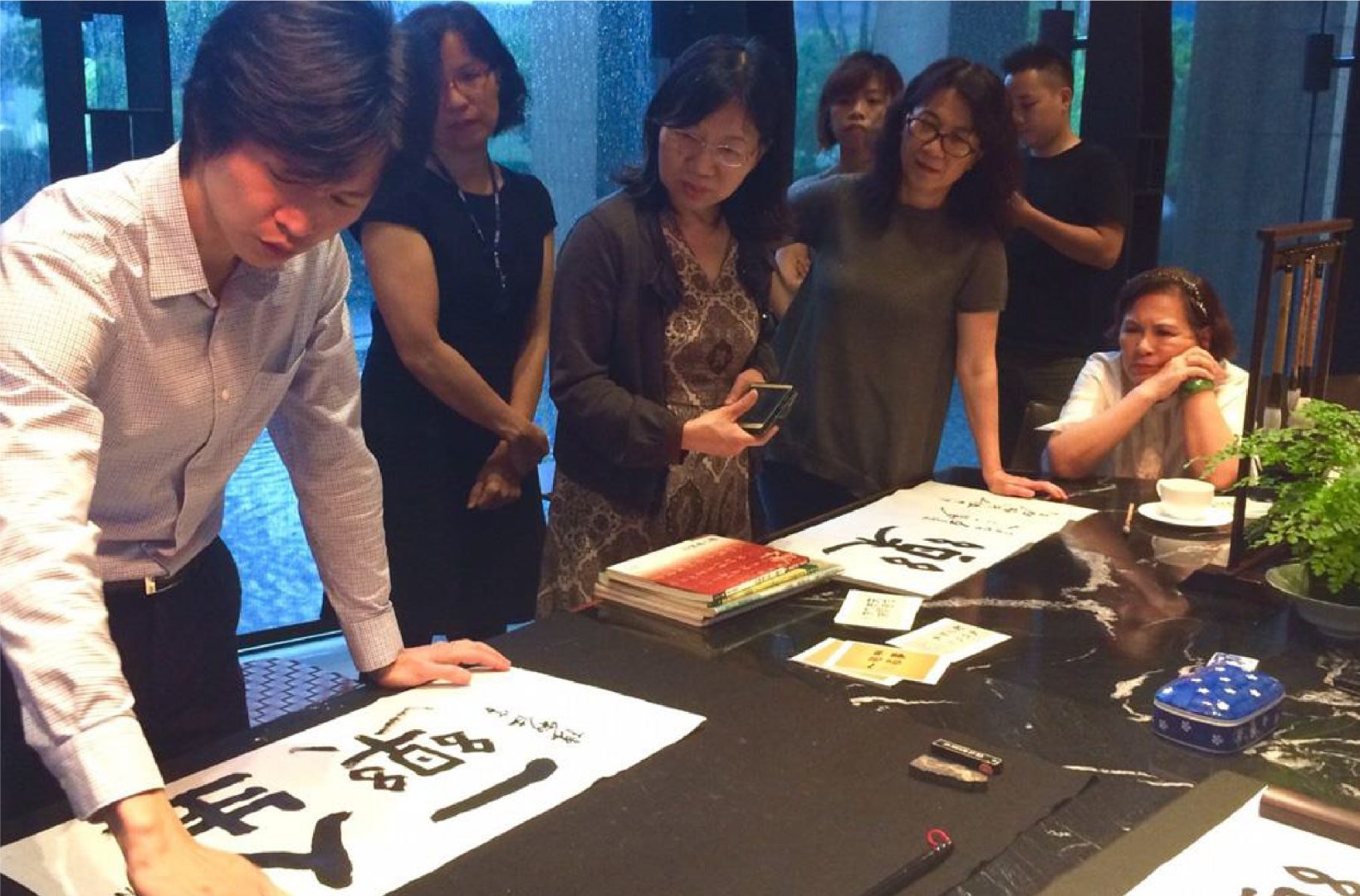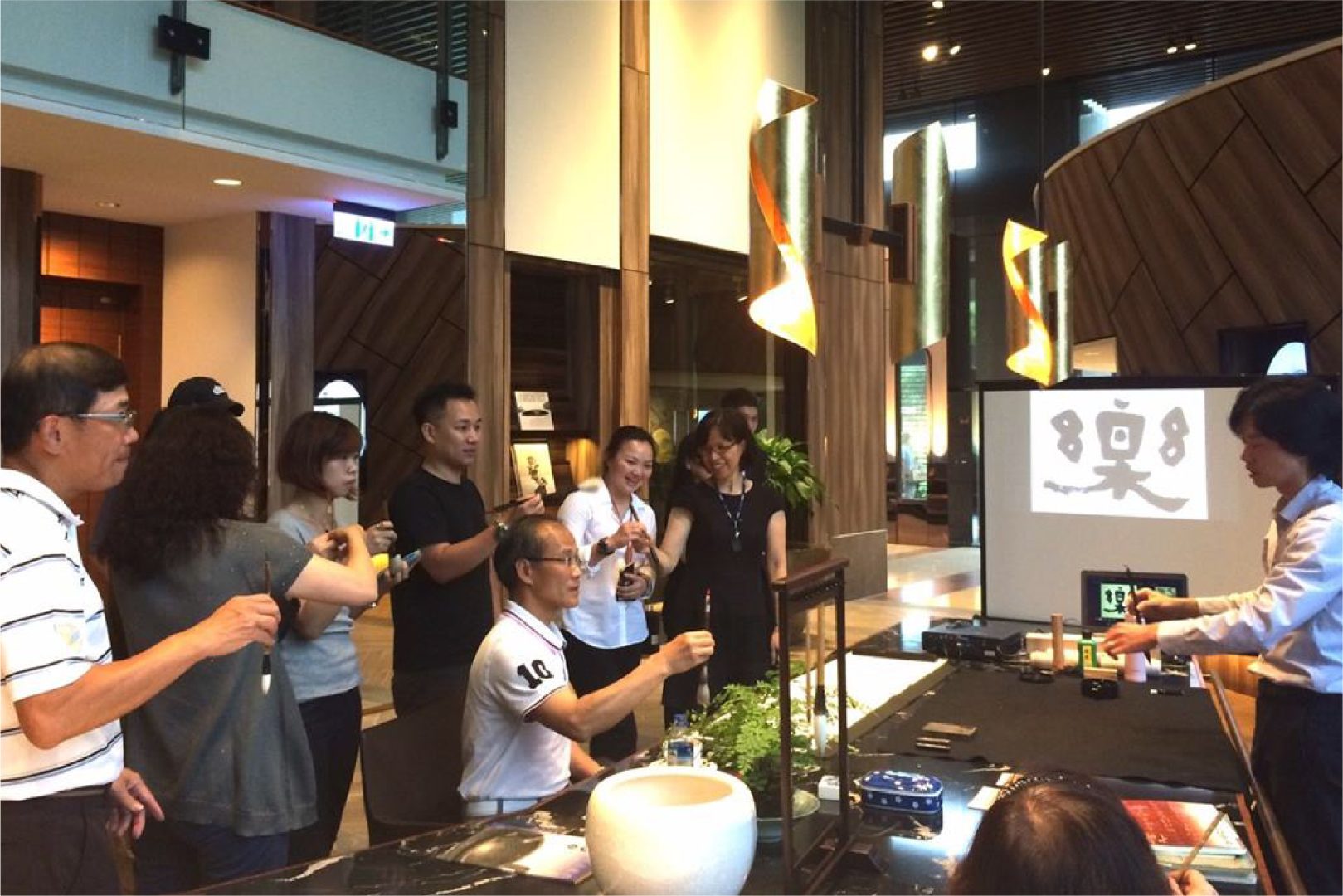 福樺建設敬邀陳柏伩博士蒞臨,於福樺謙邸一樓文房,以人生一樂為題,住戶及好友們齊聚,一同揮毫筆墨~
