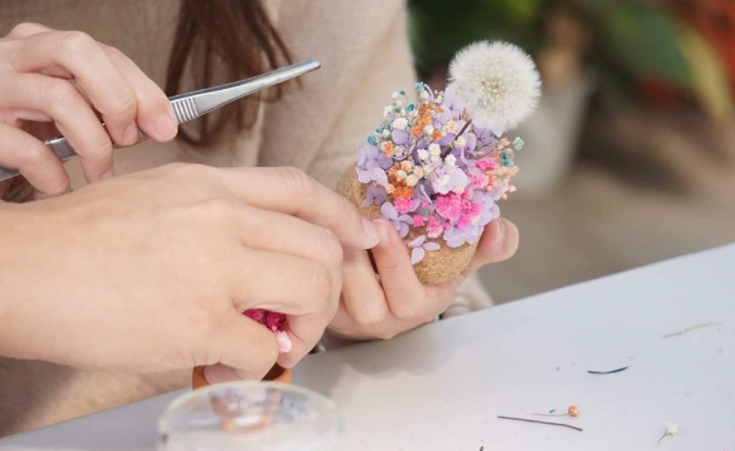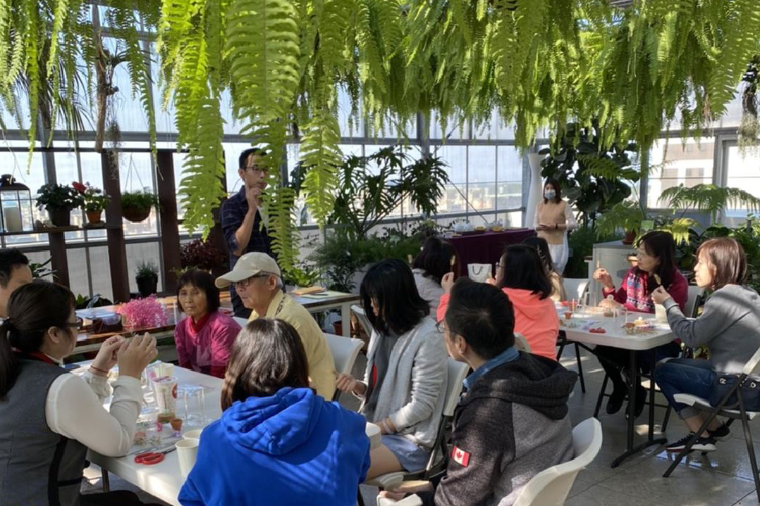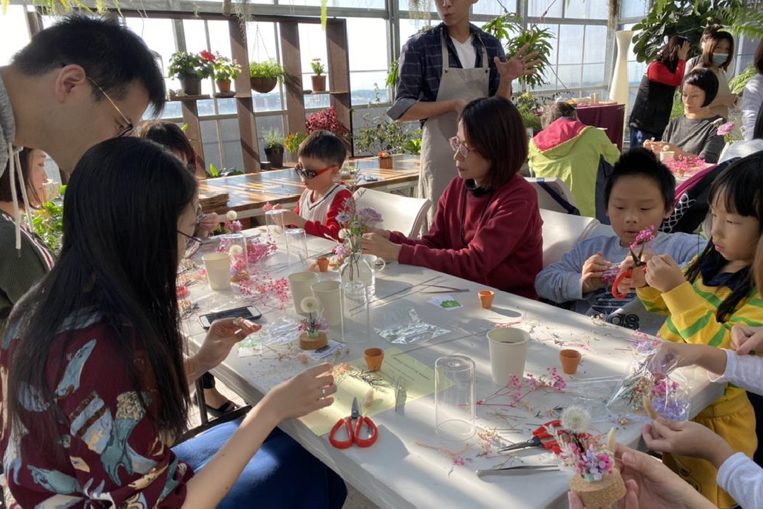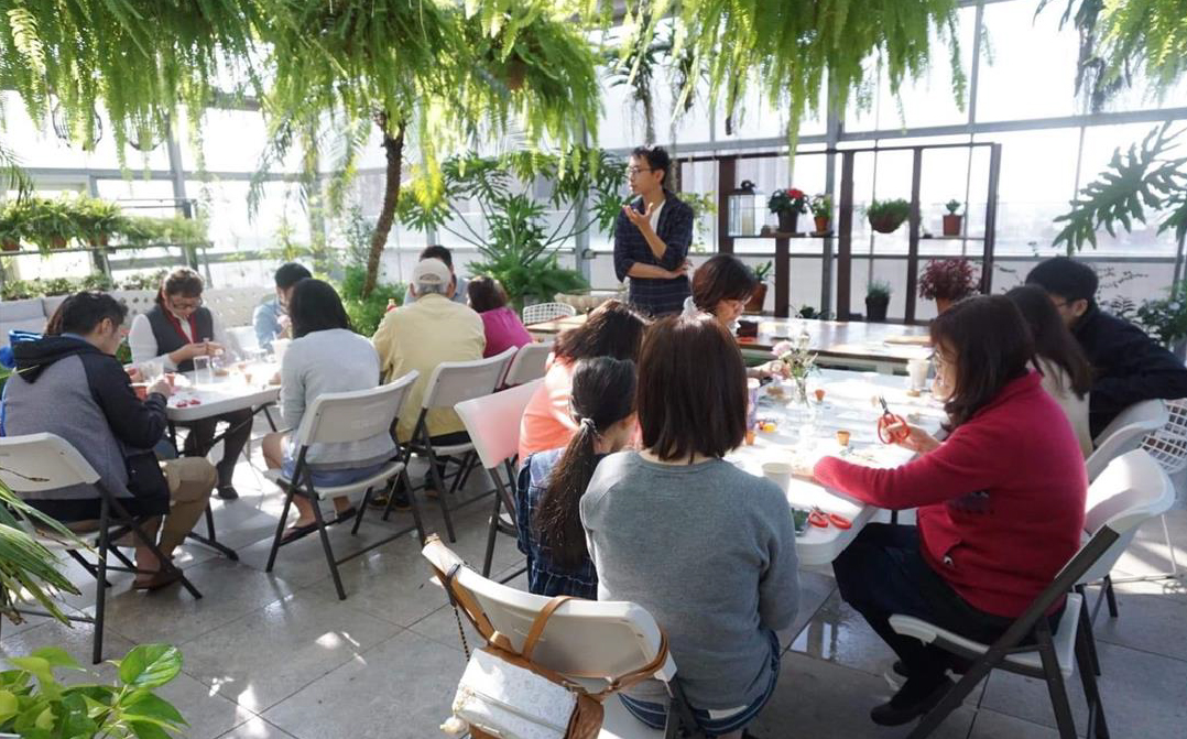 透過將栽種植物的愛好與知識,應用在日常花藝當中。抱持著分享美好事物的精神,與社區住戶們探討花的美學。