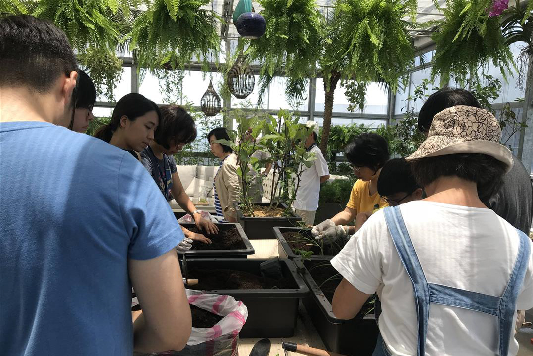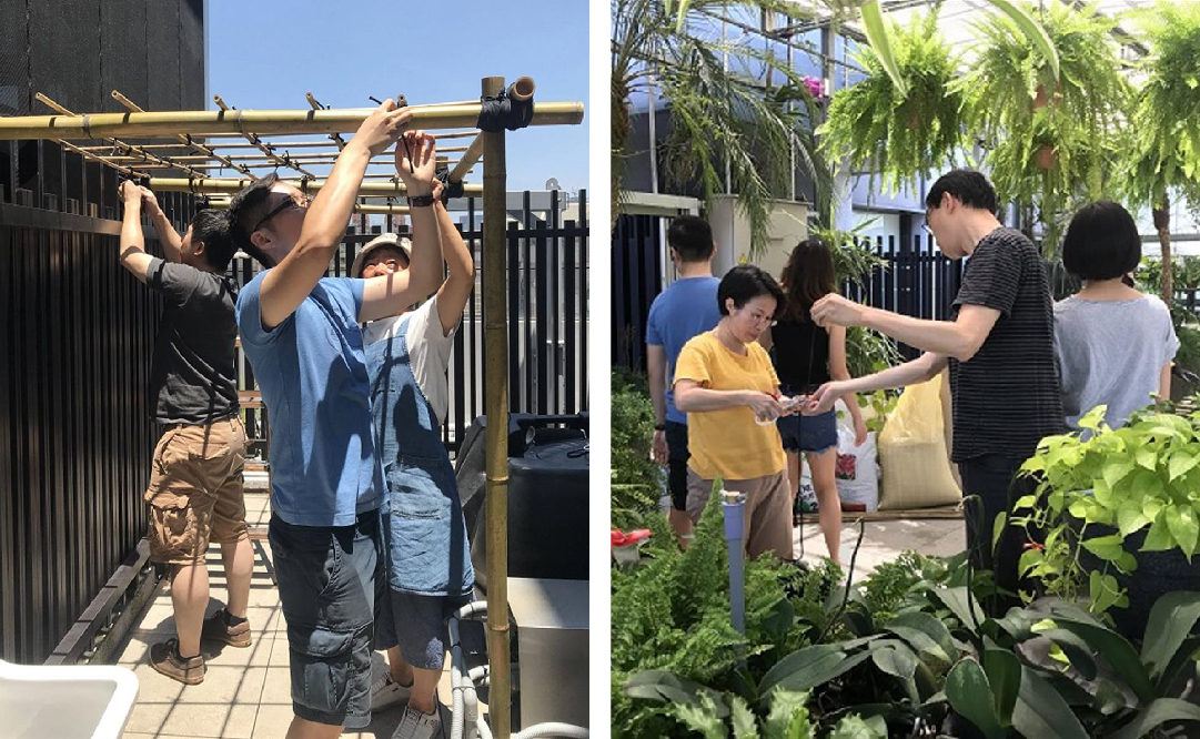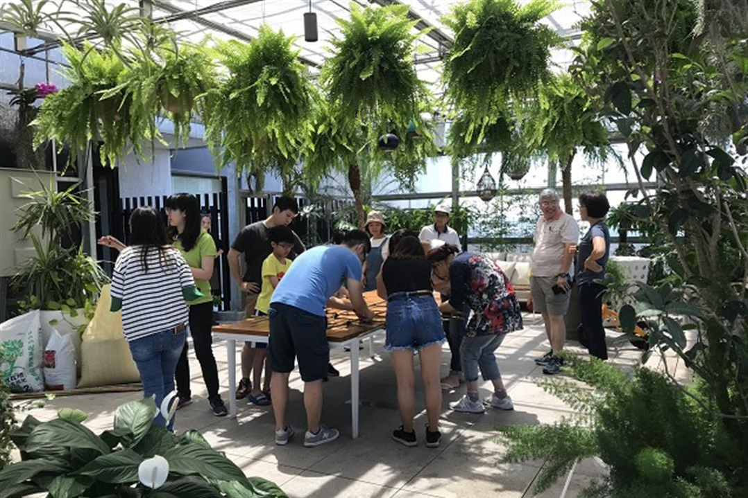福樺閱的開心農場菜葉可以採收了,我們請到謝美玲老師教大家搭棚來種植藤類作物,開心地採收前一次的葉菜,花房的正午陽光伴著勞動的汗水和採收的喜悅,吃著新鮮的菜葉伴著香積飯,一切因生活中的小豐收而美好~
